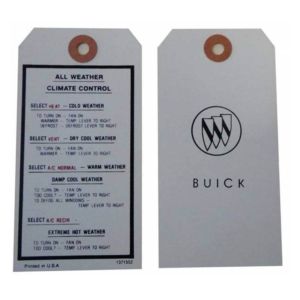 All weather climate control tag. Replaces original GM part #1371552. Add that final touch to your restoration. Top quality, officially licensed GM reproduction. MADE IN THE USA.