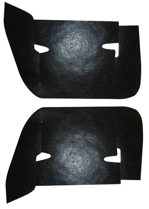 A arm dust shields. Die cut from original style masticated rubber for a factory fit. Pieces fit over a-arms, inside front inner fenders. 2 piece kit, installation staples are included. MADE IN THE USA.
