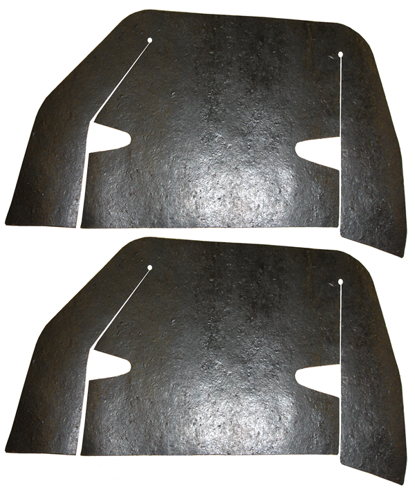 A arm dust shields. Die cut from original style masticated rubber for a factory fit. Pieces fit over a-arms, inside front inner fenders. 2 piece kit, installation staples are included. MADE IN THE USA.