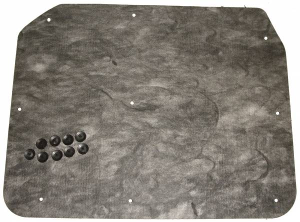 Hood insulation with clips. Top quality reproduction of the flame-resistant fiberglass-formed material. This factory machine-stamped kit is identical to the GM originals in fit and appearance when installed. Piece is approx. 50-1/2" x 40". MADE IN THE USA.