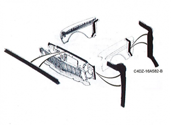 Rear of fender seal - at cowl. Die cut from original masticated rubber. Top quality, USA MADE to original specifications. Install staples included.