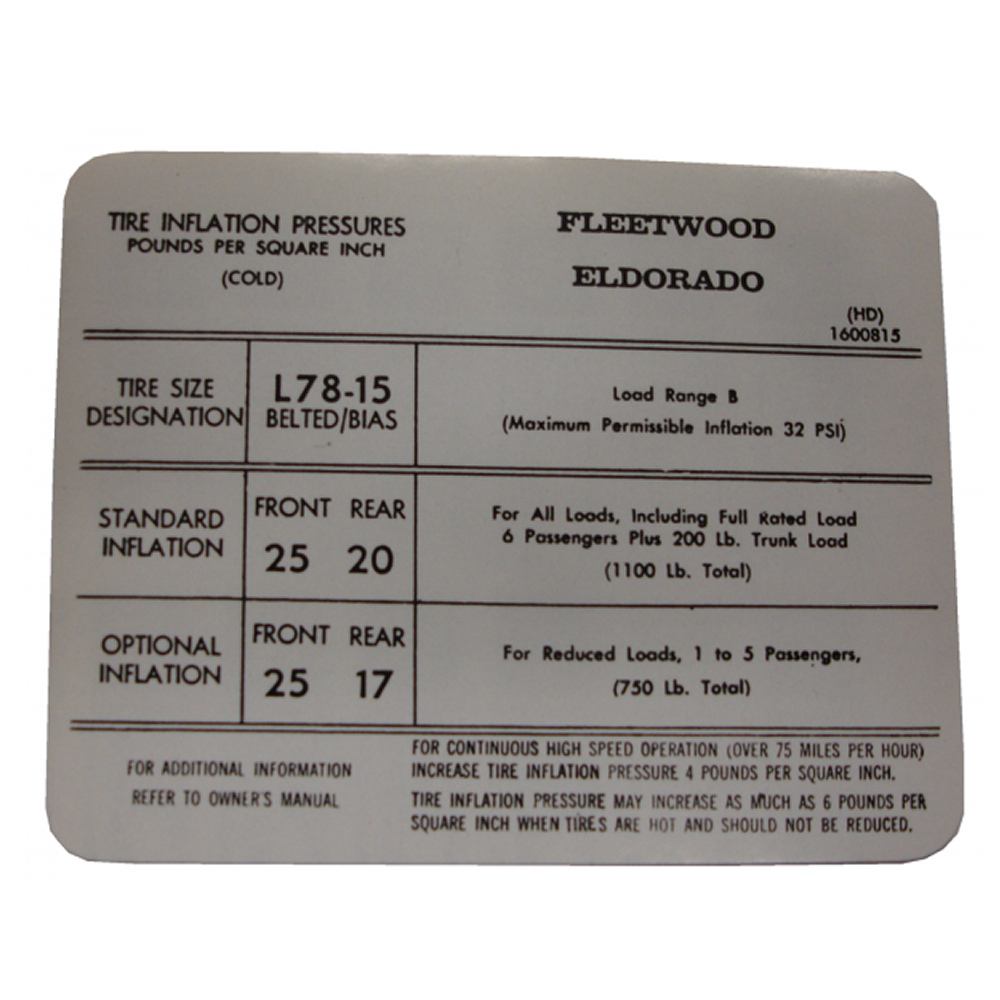 Tire Pressure Decal
