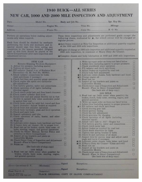 New vehicle inspection sheet. Replaces original GM part #BPS622. Add that final touch to your restoration. Top quality, licensed reproduction. MADE IN THE USA.