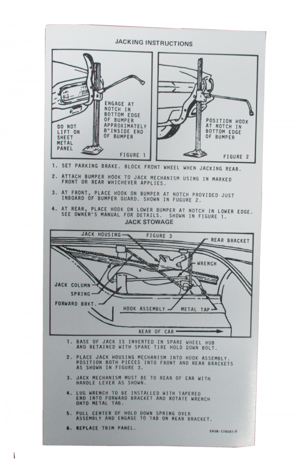 Jack instructions decal. Typically found on underside of trunk lid. Add that final touch to your restoration. Top quality, official Ford reproduction, MADE IN THE USA.