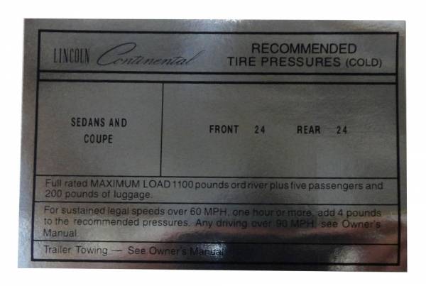 Tire Pressure Decal