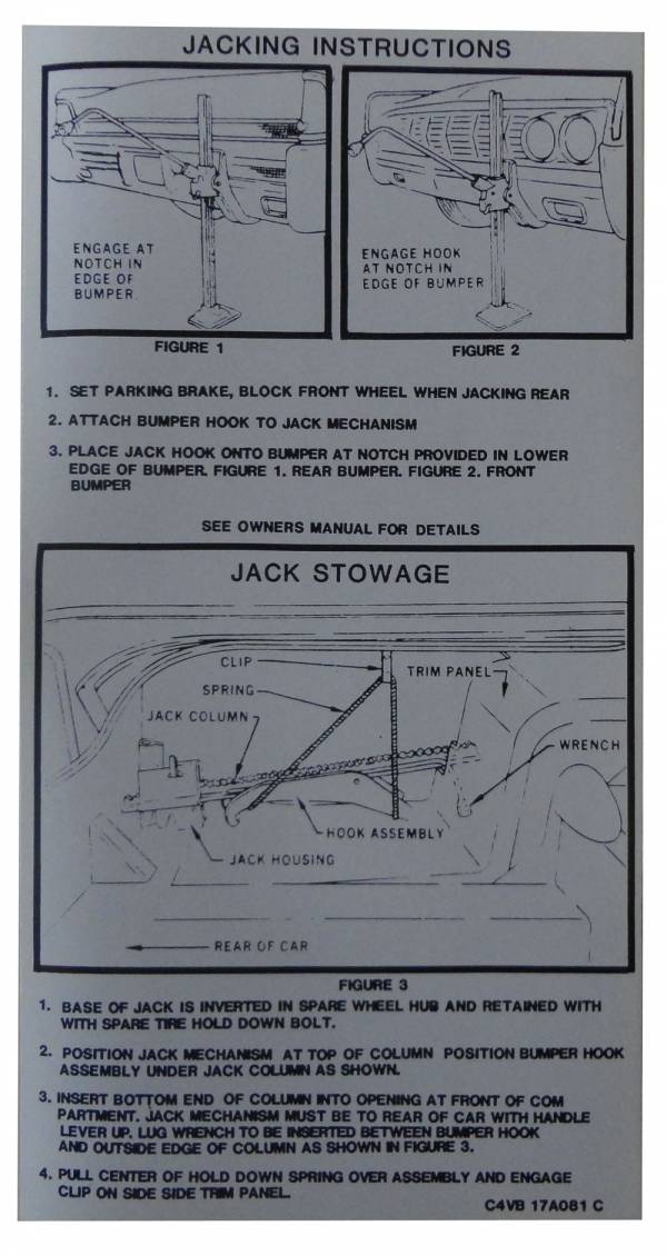 Jack instructions decal. Typically found on underside of trunk lid. Replaces original part # C5VB-A. Add that final touch to your restoration. Top quality, licensed Lincoln decal. MADE IN THE USA.