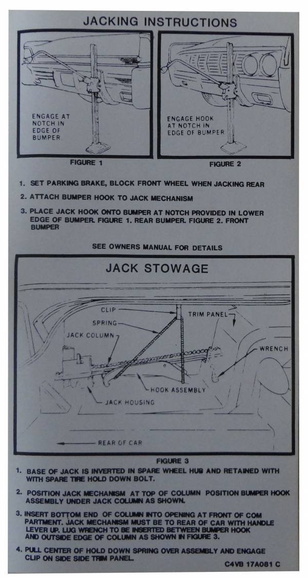 Jack instructions decal. Typically found on underside of trunk lid. Replaces original part # C4VB-C. Add that final touch to your restoration. Top quality, licensed Lincoln decal. MADE IN THE USA.