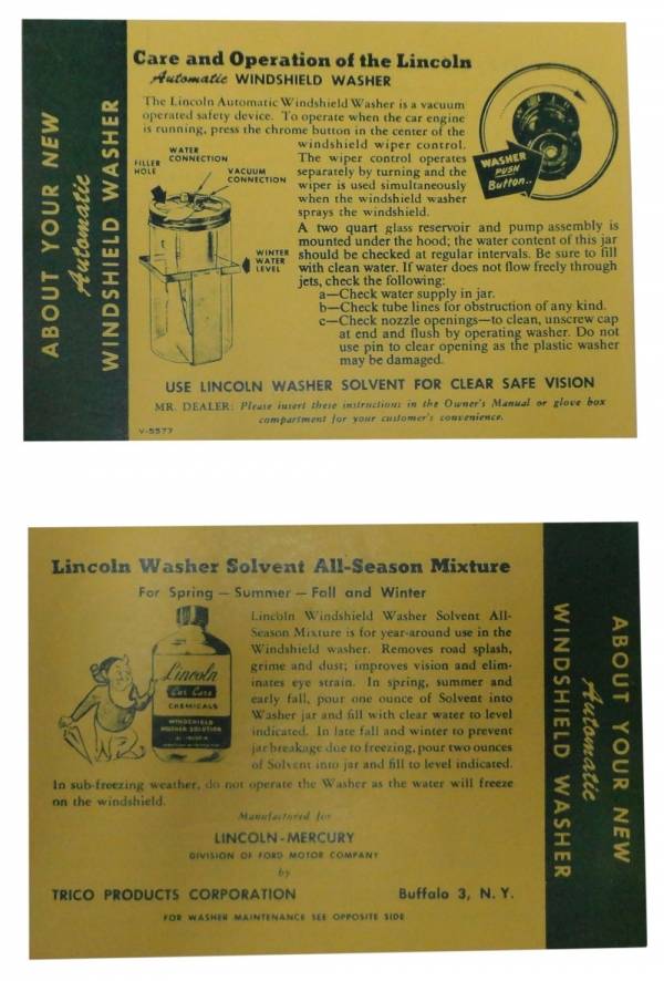 Windshield washer instructions sheet. Add that final touch to your restoration. Top quality, officially licensed reproduction. MADE IN THE USA.