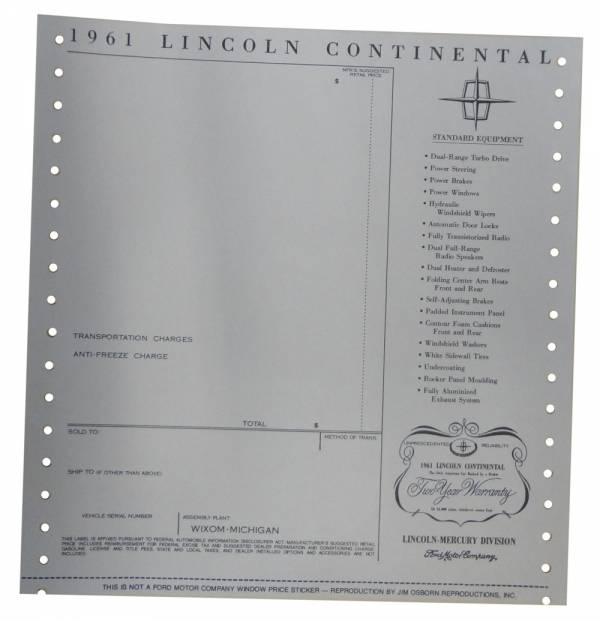 New Car Window Price Sticker