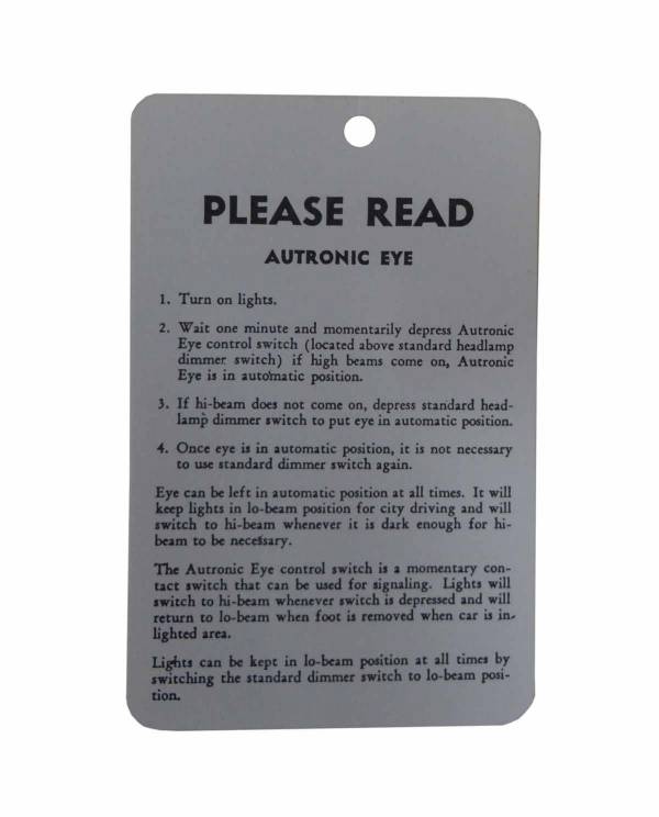 Autronic eye instructions tag. Add that final touch to your restoration. Top quality, official GM reproduction, MADE IN THE USA.