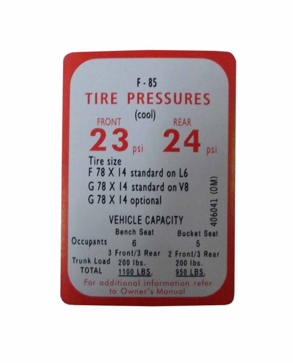 Tire pressure decal. Replaces original GM part #406041. Top quality, officially licensed GM product, MADE IN THE USA.