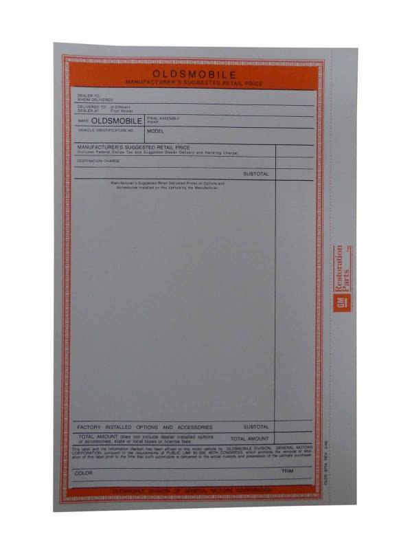 New car window price sheet. Add that final touch to your restoration. Top quality, official GM reproduction, MADE IN THE USA.