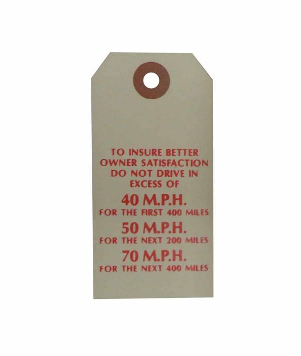 New vehicle break in instructions tag. Add that final touch to your restoration. Top quality, official GM reproduction, MADE IN THE USA.