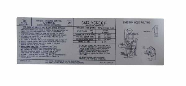 Emission decal - for models with automatic transmission & 4.3 litre. Replaces original GM part #SB 22500525. Top quality, official GM reproduction, MADE IN THE USA.