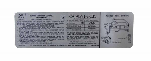 Emission decal - for models with automatic transmission & 403. Replaces original GM part #OM 557306. Top quality, official GM reproduction, MADE IN THE USA.