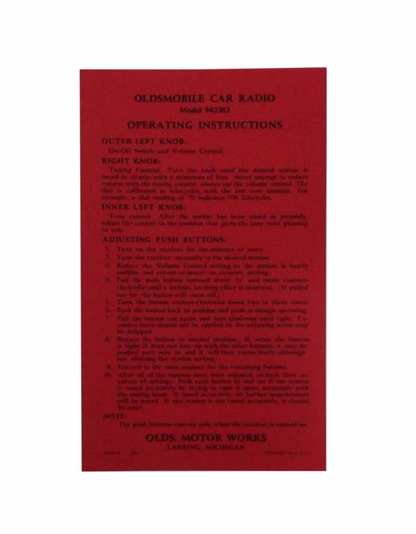 Radio instructions sheet. Add that final touch to your restoration. Top quality, official GM reproduction, MADE IN THE USA.