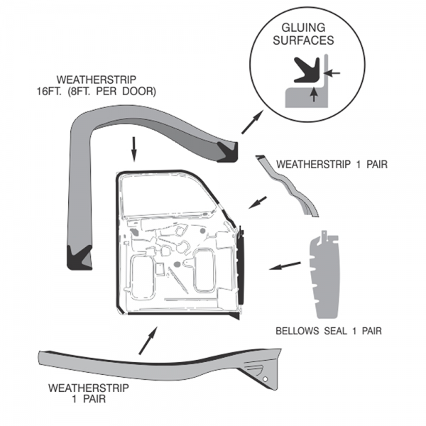 - This is the primary door to body weatherstrip kit - seals the perimeter of the door to the body