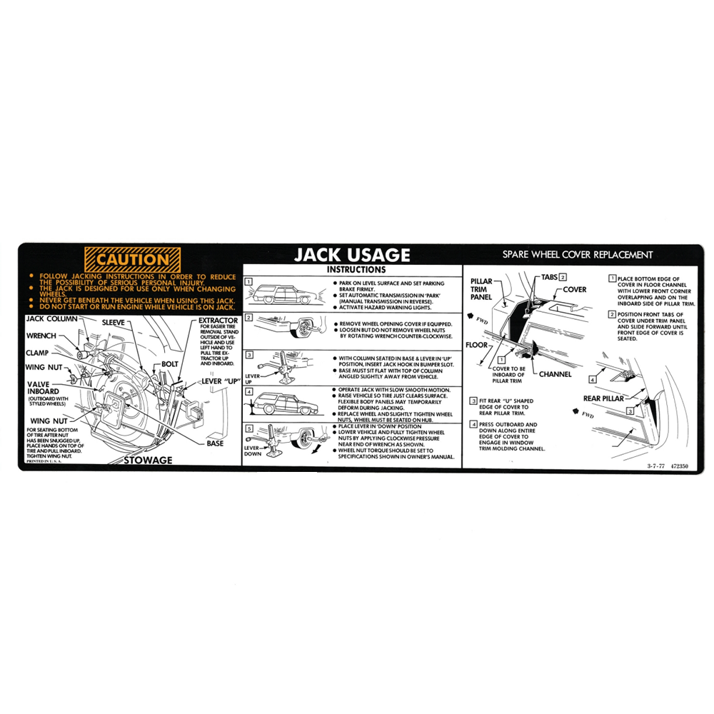 Jack Stowage And Use Decal. Nothing adds that final touch like the proper decals. Our American Made reproductions will make your car stand out!