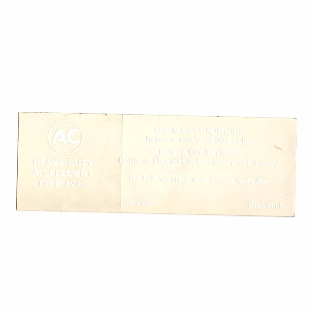 Air Cleaner Service Instructions Decal. Nothing adds that final touch like the proper decals. Our American Made reproductions will make your car stand out!